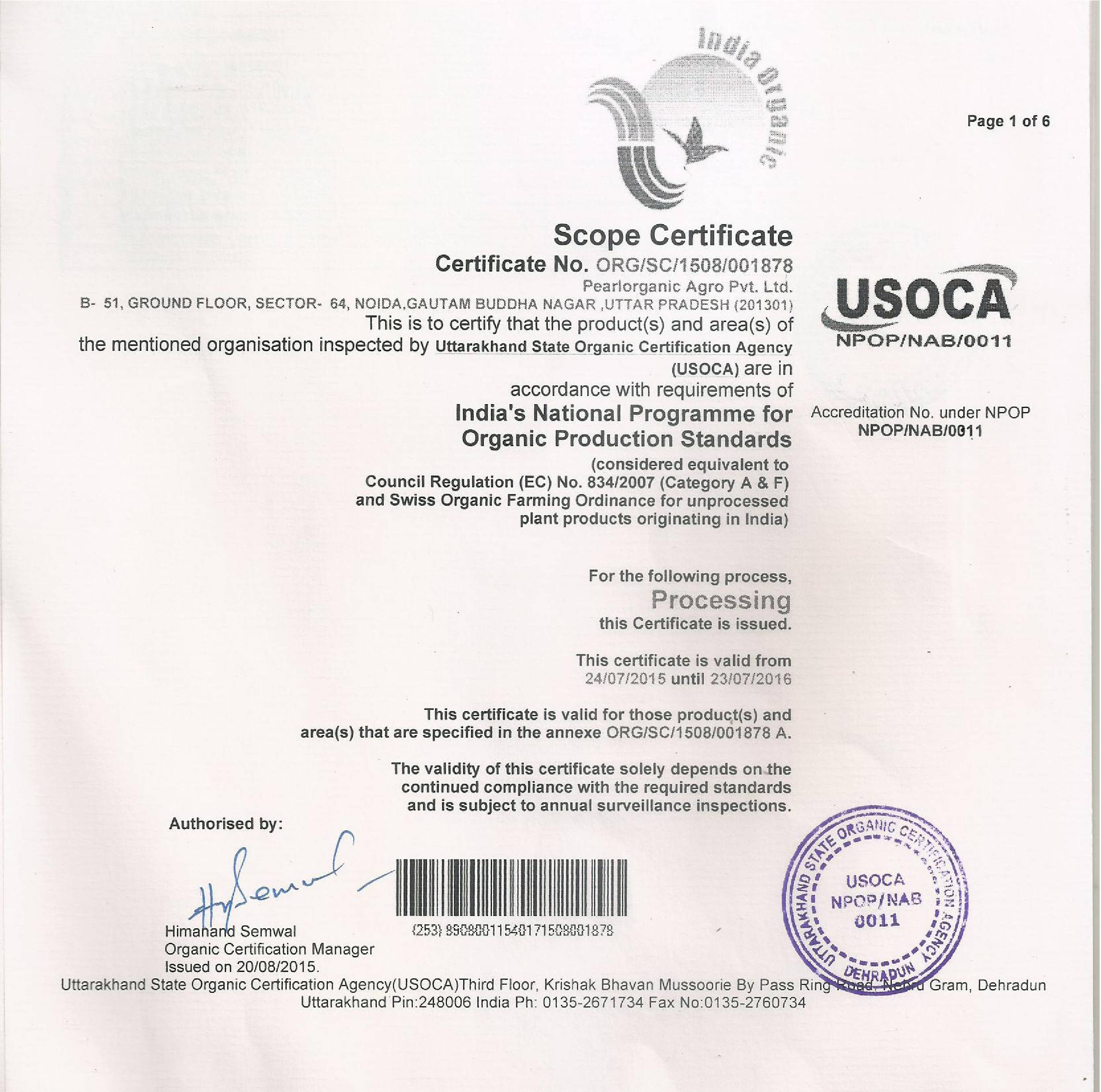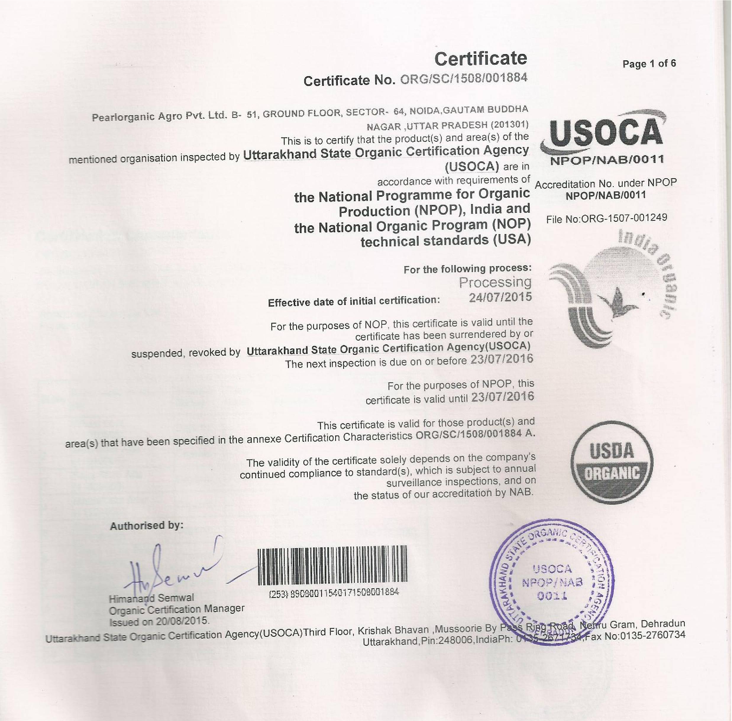 With increase in the demand of organic commodities worldwide, the Pearlorganic Agro Pvt. Ltd. started in the year 2015 the processing and trading of Organic Certified commodities. Uttarakhand state Organic Certification Agency (USOCA) is selected to get the license for the processing and trading of certified organic commodities. The company will primarily do the packing and repacking of the certified organic products. The products in which the company will deal are as follows: